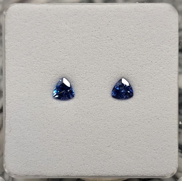 Pair of Faceted Benitoite Gemstones .32 ctw., Trillion Cut