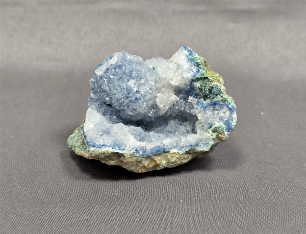 It has a coating of druzy quartz crystals giving the specimen a mirrorball look in the light.