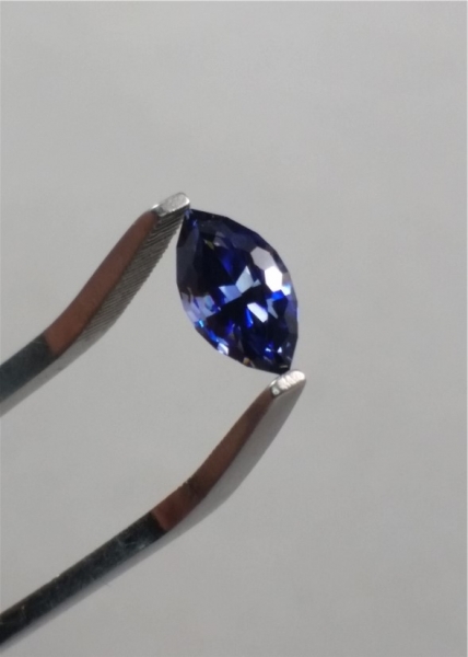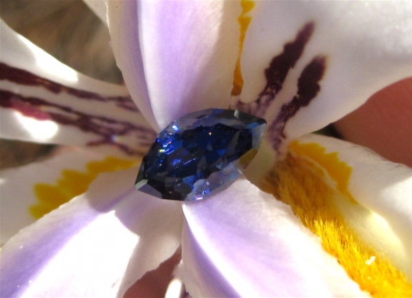 The color is a beautiful benitoite dark blue with violet.