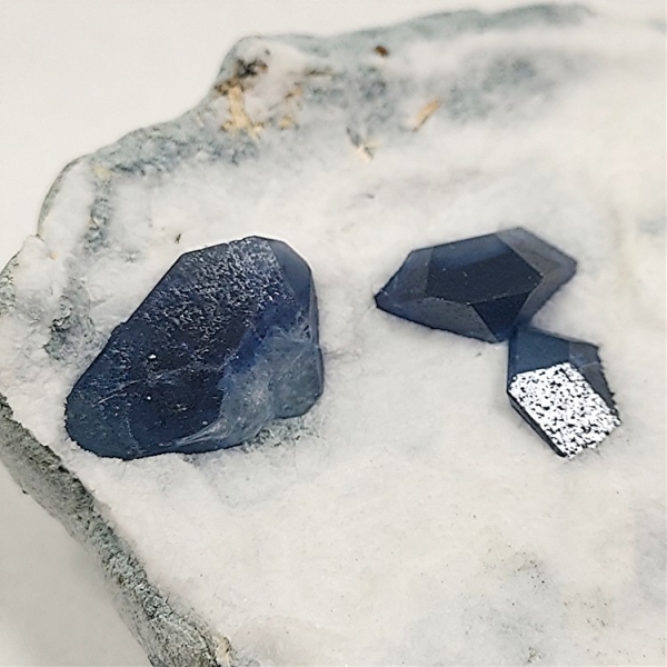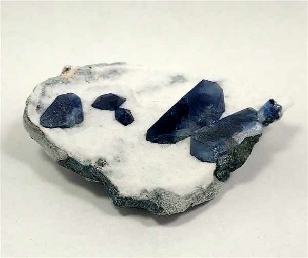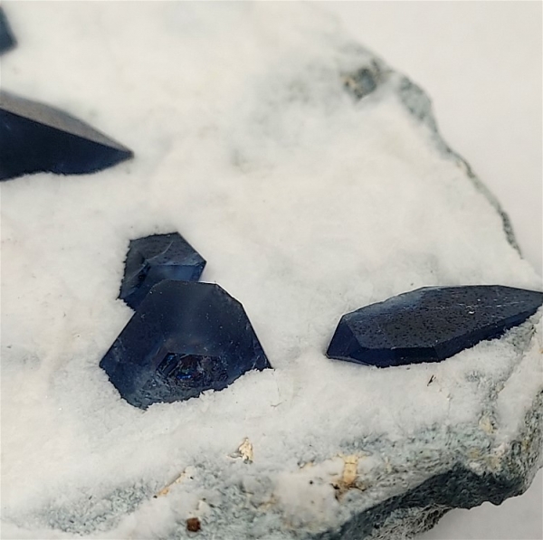 The sharply terminated benitoite crystals, have that beautiful blue coloring,