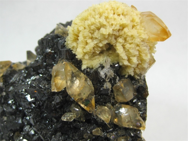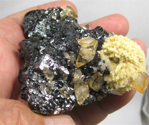 In addition, there are numerous scalenohedral Calcite crystals in varying sizes.